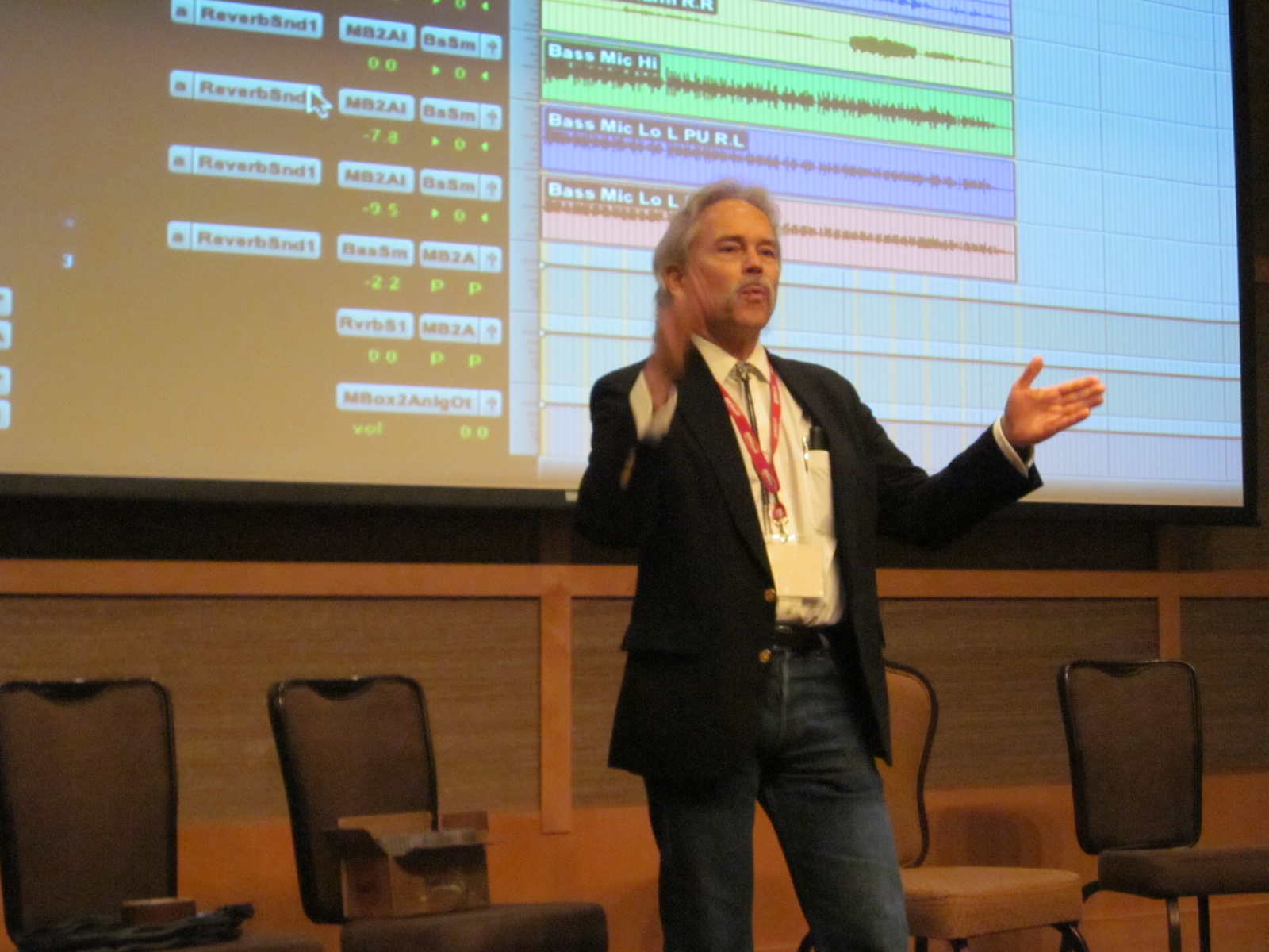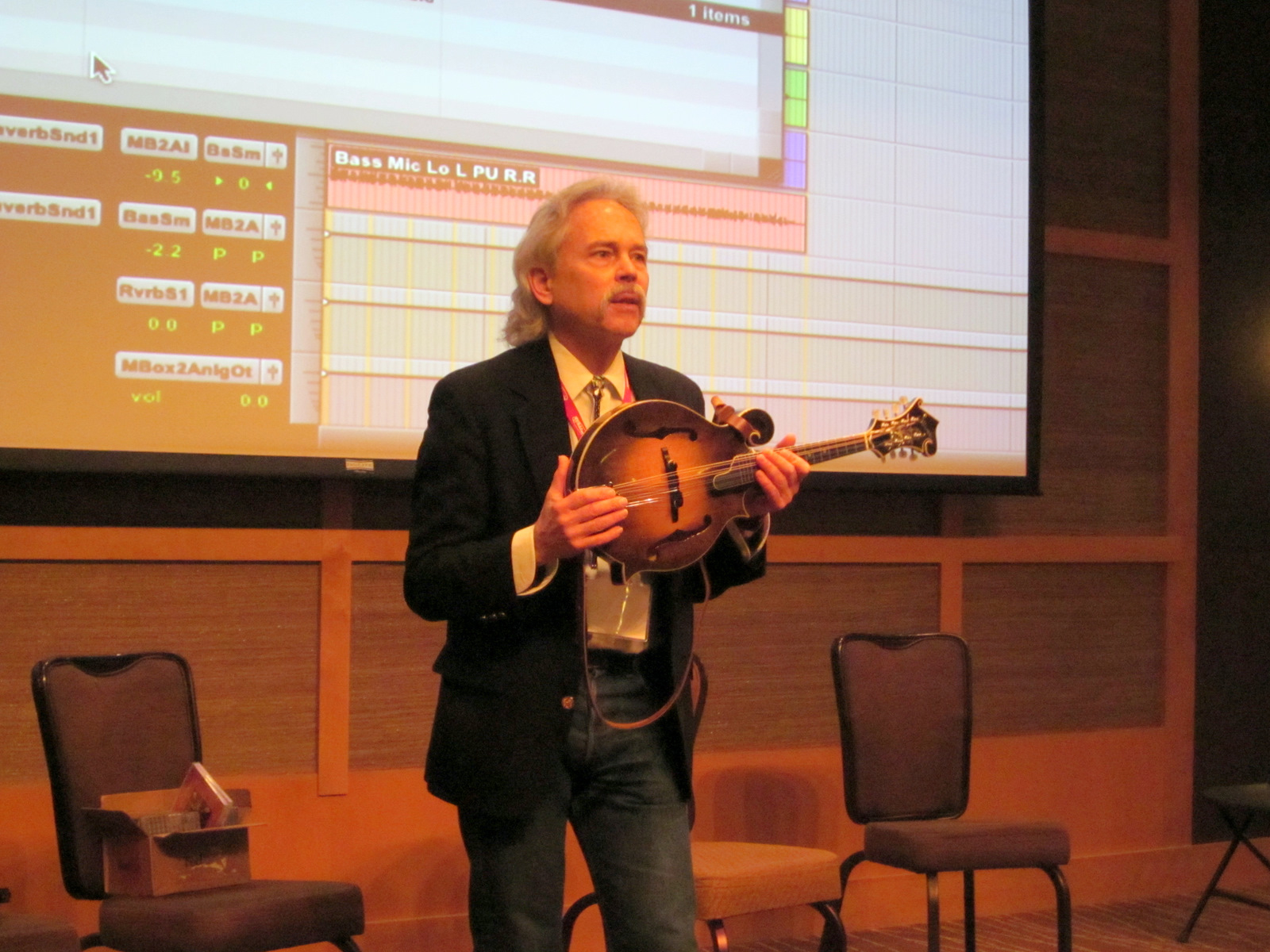 Joe gives mixing tips at recording workshop, Wintergrass, 2011